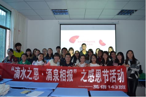 11月26日下午,英语143班在感恩节之际于外语楼419教室开展一场特别的班级活动,此次活动邀请了英语143班班主任刘敬轩老师参加。