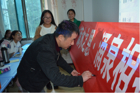 在收获了温馨和感动之后,游戏环节开始了,所有同学随机分成五个组,上演“你演我猜”,最后第二组的同学赢得了游戏第一名,获得了丰厚的奖励。游戏过后的抽奖环节也是惊喜不断,不少同学都抽到了可爱的礼品。最后,在刘老师的带领下同学们依次到红布上签字,写下自己内心感恩的誓言。